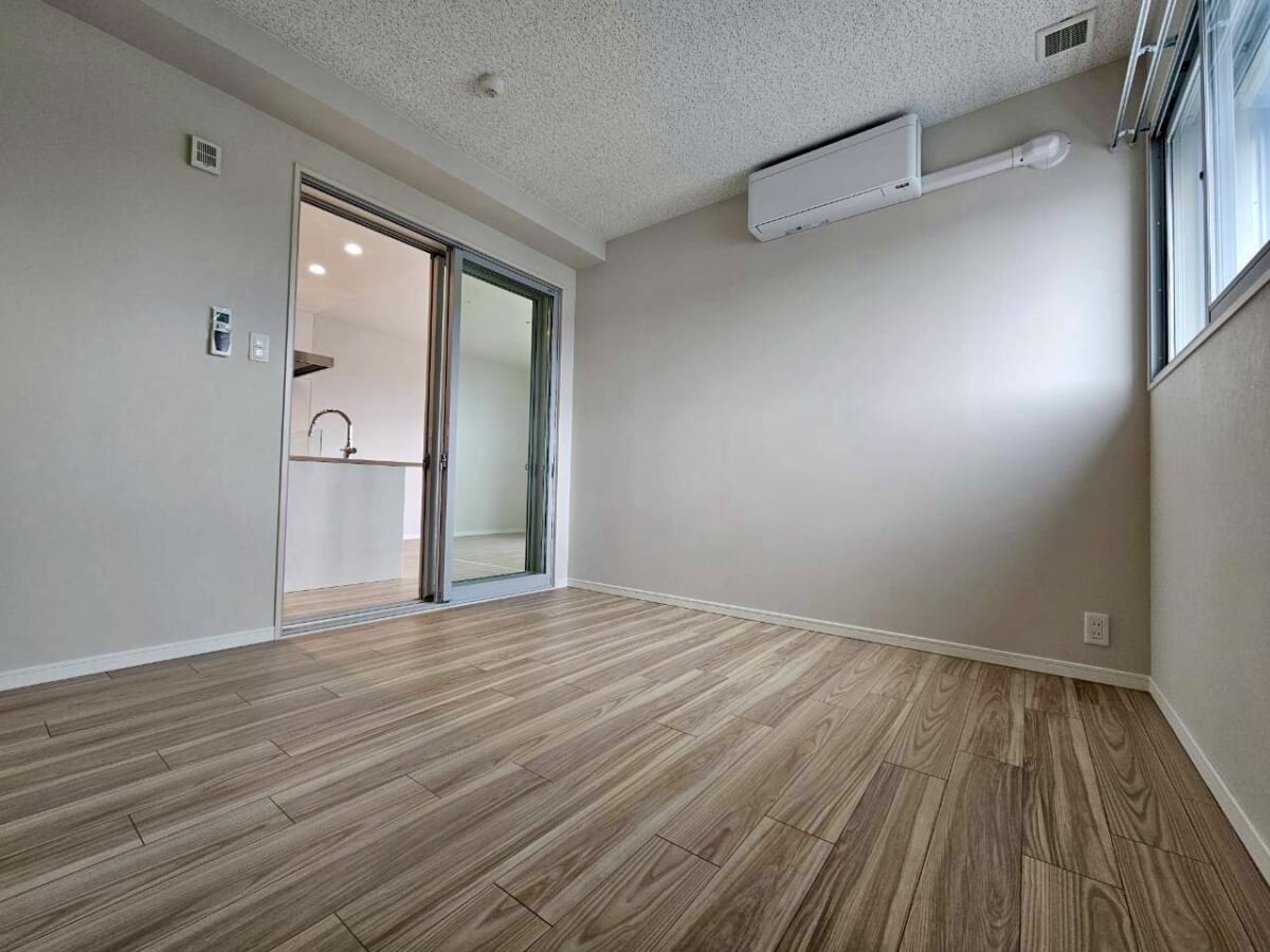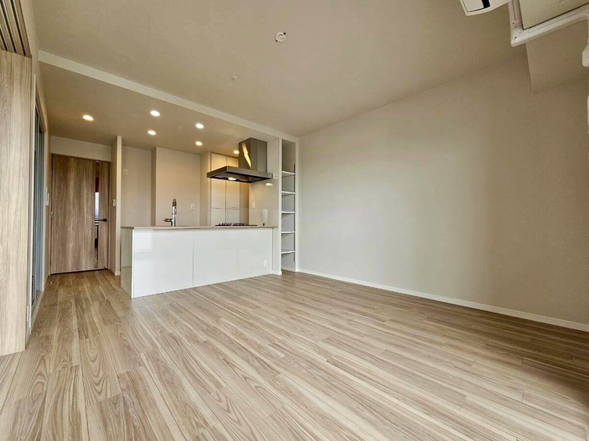 ナチュラルな木目調フローリングで清潔感があり、どんなインテリアとも合わせやすくお部屋全体も明るく広く見えます。